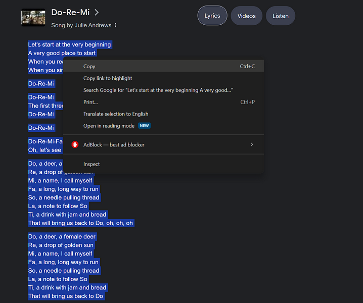 5。ここで、あなたはできます選択した曲の歌詞をプレーンテキストとして見る。