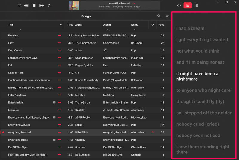 5。パネルでは、できます歌詞が強調表示されるのを参照してください歌が進むにつれて。それもそうします自動的にスクロールしますそして、曲の現在の歌詞を視野に入れてください。