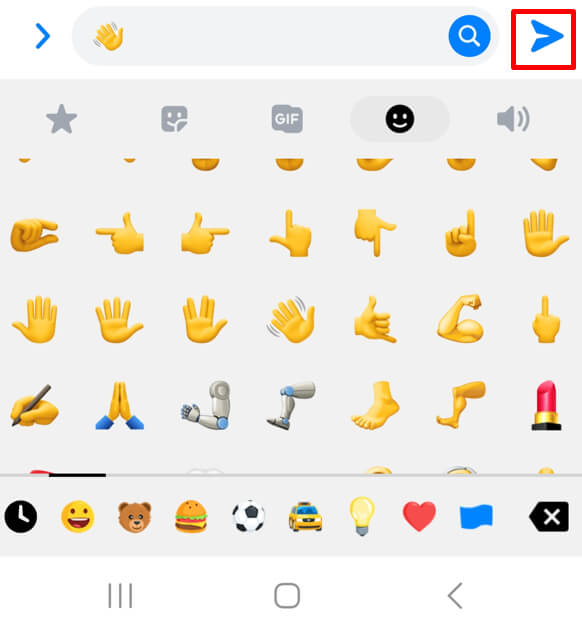 - 波の絵文字をタップし、[送信]ボタンをクリックします。