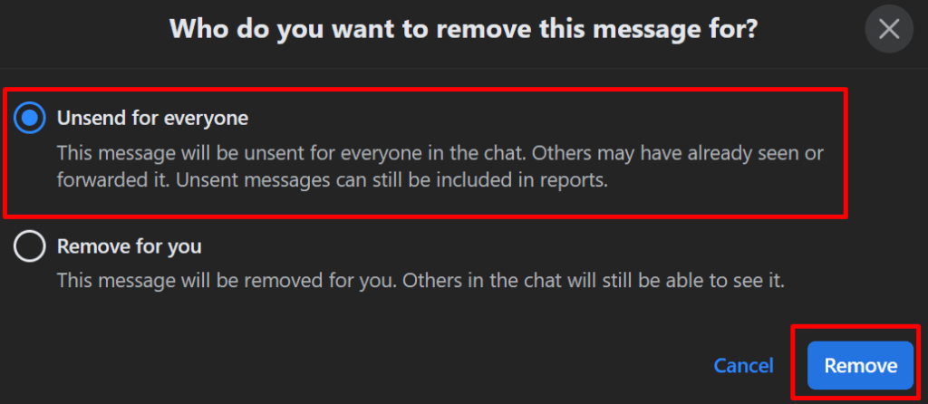 メッセージが受信トレイから削除されたことに気付くでしょう。しかし、受信者は、メッセージの解決に気付かないという通知を受け取る可能性があります。その人との関係に応じて、誤って何かを送ったことを説明することをお勧めします。