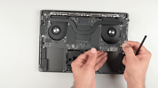 M3 Proのデュアルファン構成により、効率的な熱散逸が保証され、要求の厳しいワークロード中に熱の蓄積を効果的に管理します。対照的に、M3バリアントは比較的遅いため、単一のファンとより短いヒートシンクを統合します。単一のファンと人間工学に基づいた完全性を維持するために、Appleはロジックボードを戦略的に拡大しました。これらのデザインのニュアンスは、長期にわたる使用状態であっても、M3 MacBook Proのシームレスな機能に貢献します。