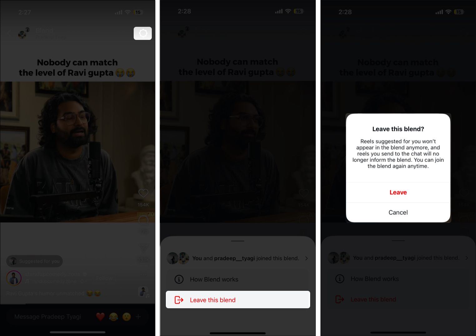前述のように、Instagram DMの会話でブレンドを開始して、共有フィードで友人とのリールを発見し始める必要があります。