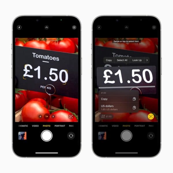 ライブテキストはこれまで以上に賢くなり、テキストを写真に翻訳したり、通貨を変換したり、他の迅速なアクションを実行したりできます。ライブテキストは、ビデオを一時停止することでも使用できます。これにより、フレーム内のテキストを認識し、ユーザーが対話できるようにします。
