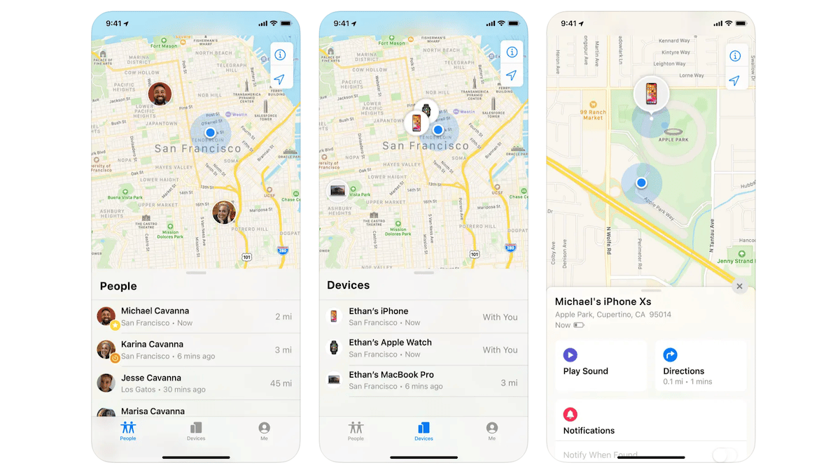 Appleデバイスに統合された私のアプリでは、ユーザーがiPhone、iPad、Mac、Apple Watch、AirPodsなどの場所を、インターネットに接続していなくてもリアルタイムでマップ上で追跡できます。このアプリは、欠落しているデバイスの場所への道順を提供し、近くにある場合、ユーザーはPingサウンドを再生してそれを見つけることができます。