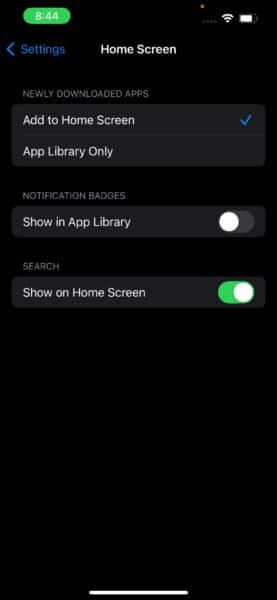 無効にする場合は、設定>ホーム画面に移動して、検索中の「ホーム画面上の表示」オプションを探してください。トグルを無効にして、ホーム画面に戻ります。