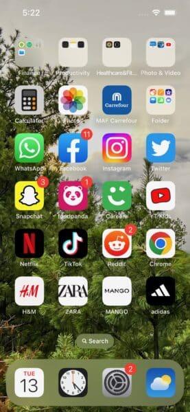 iOS 16の新しいホーム画面検索ボタンの外観は次のとおりです。