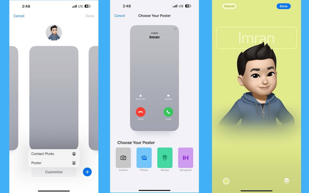 iOS 17の電話アプリの連絡先ポスターを作成およびカスタマイズする方法は次のとおりです