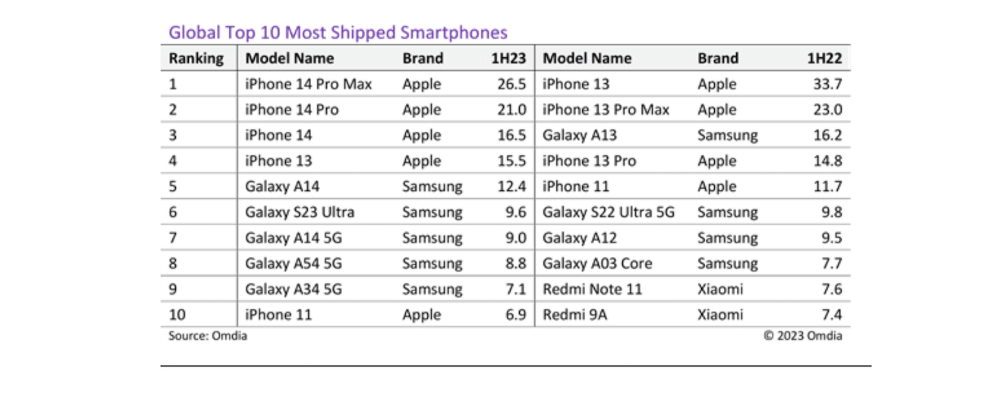 Omdiaの新しい「スマートフォンモデルマーケットトラッカー - 2Q23」レポートは、1月から6月までの2023年上半期に、iPhone 14 Pro Maxが世界中で最も出荷されたスマートフォンであったことを明らかにしています。