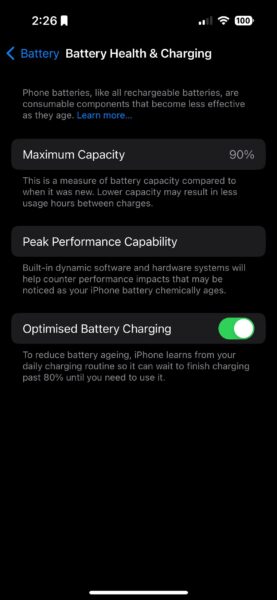 同様のメモには、別のメモがありました報告されたインスタンスiPhone 14 Proのバッテリーの健康状態は、数週間で100%から94%に低下します。