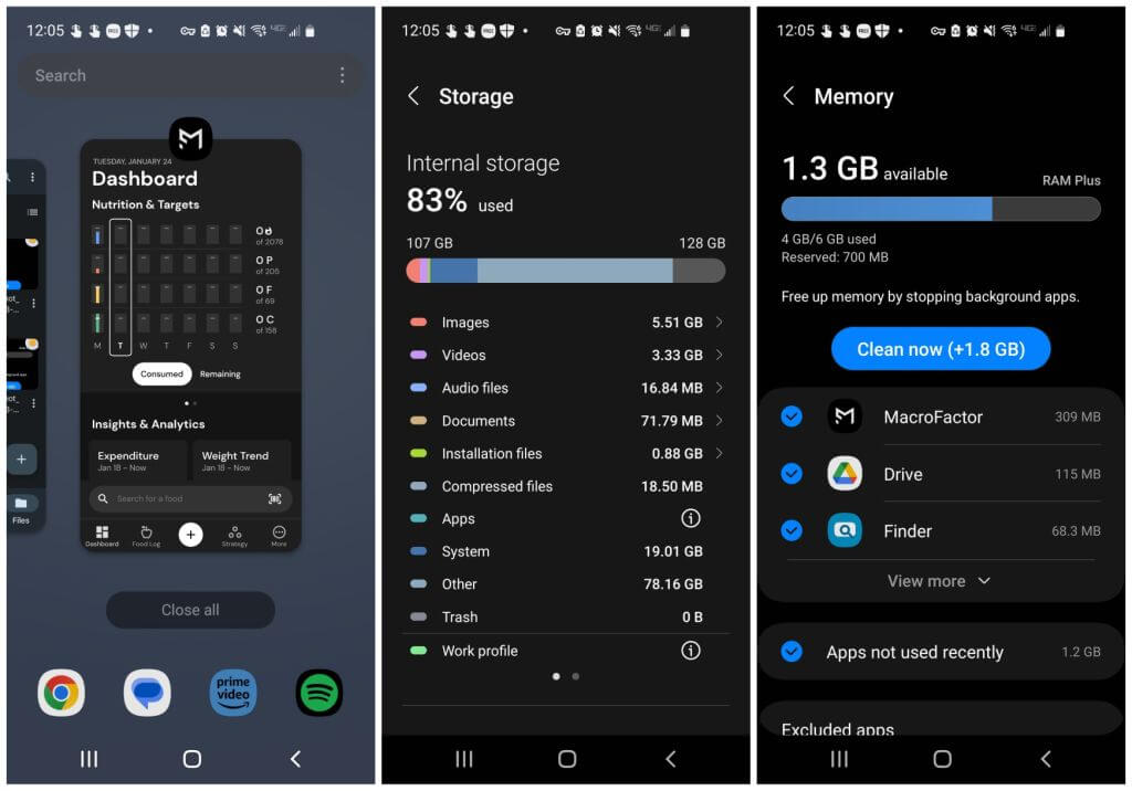 Android携帯電話でこれを行う最も簡単な方法は、タップすることですバッテリーとデバイスのケア設定で。次に、タップしますストレージどのファイルタイプを表示および閉じるには、ほとんどのスペースを使用します。最後に、タップしますメモリどのアプリがメモリを使用しているかを確認し、タップします今すぐきれいにしますそれらすべてを閉じるために。
