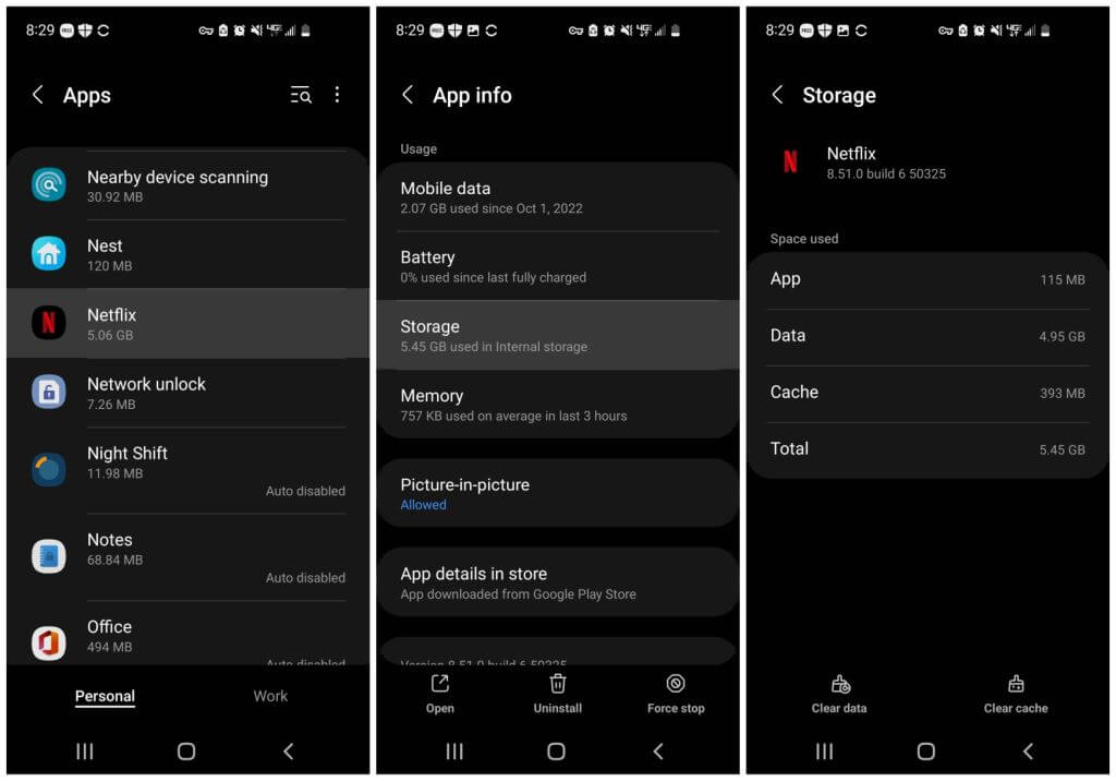 Netflixがデバイスでクラッシュする最も一般的な原因の1つは、メモリの欠如です。これは、デバイスのバックグラウンドで実行されているアプリが多すぎる場合、またはデバイスのストレージがほぼいっぱいである場合に発生する可能性があります。これを修正するには、すべての不要なアプリを閉じて、デバイスから不要なファイルまたはアプリを削除します。