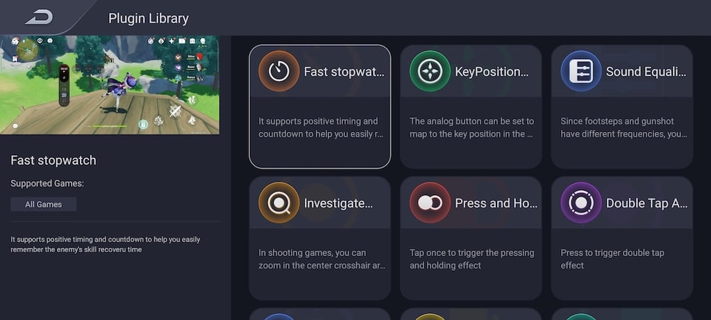 にアクセスしますゲームスペース、RedMagic 7の左側にある赤(またはマゼンタ)スイッチボタンをオンにします。ゲームロビー。選択しますスーパーパワーベース>プラグインライブラリ。そこには、画面の中央でズームインして隠されたターゲットを見つける機能から、画面の色を反転してカモフラージュされた敵を検出できるようにすることができるように、さまざまなゲームで使用できるすべての超大国を見つけることができます。これらのプラグインのほとんどはすべてのゲームで機能しますが、一部のゲームは特定のタイトルに限定されています。