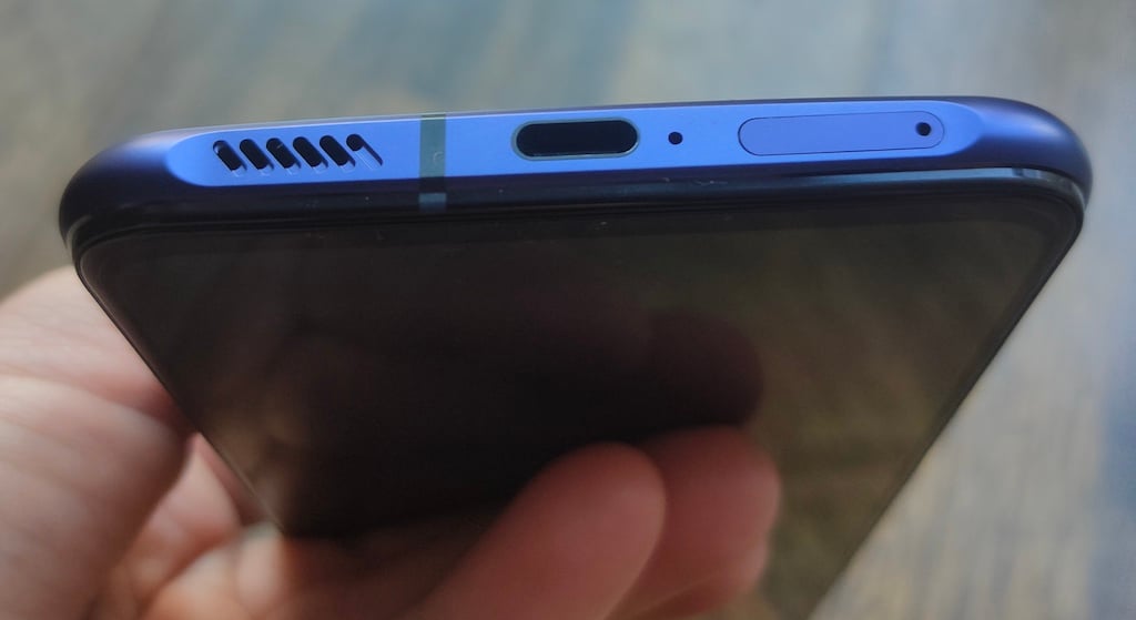 ヘッドフォンジャックは、マイクの1つと一緒にデバイスの上部にあります。もう1つのマイクは、SIMカードスロット、USB-Cポート、スピーカーグリルも収容されている携帯電話の下部にあります。