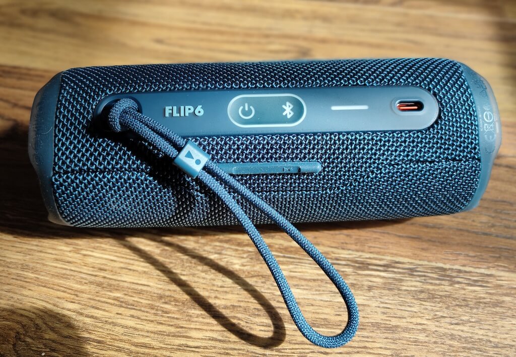 電源ボタン、Bluetoothボタン、およびUSB-C充電ポートはすべてFlip 5と同じ場所にあります。ただし、前任者と比較して、それらが使用しているパネルは現在小さくなっています。