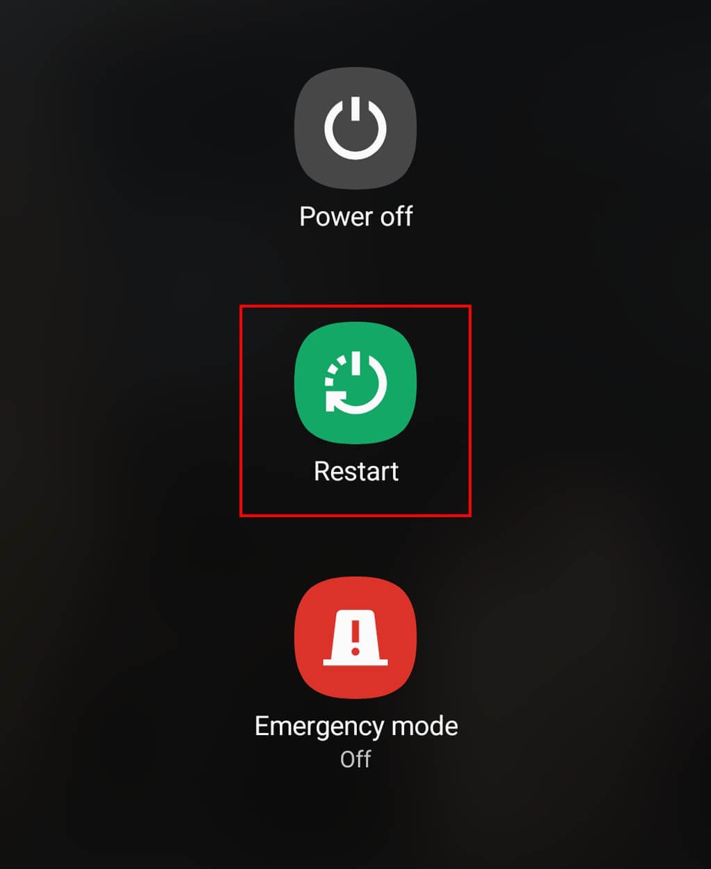 Androidでは、画面の上部から2回ドラッグして選択して携帯電話を再起動します力アイコン。選択します再起動電話機が再起動するのを待ちます。