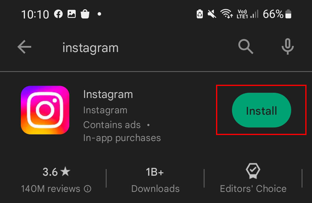 - 開きますGoogle Playストア、「Instagram」を検索し、選択しますインストール。