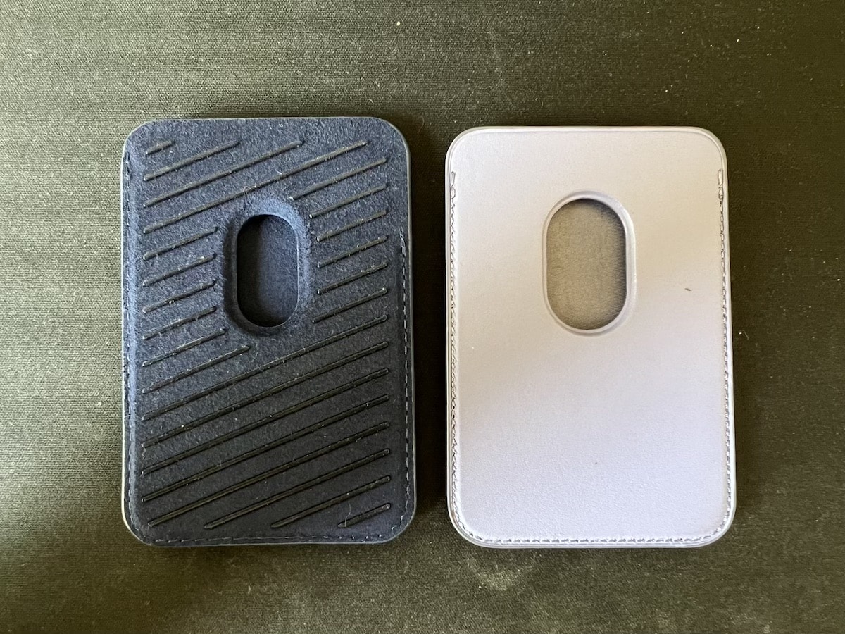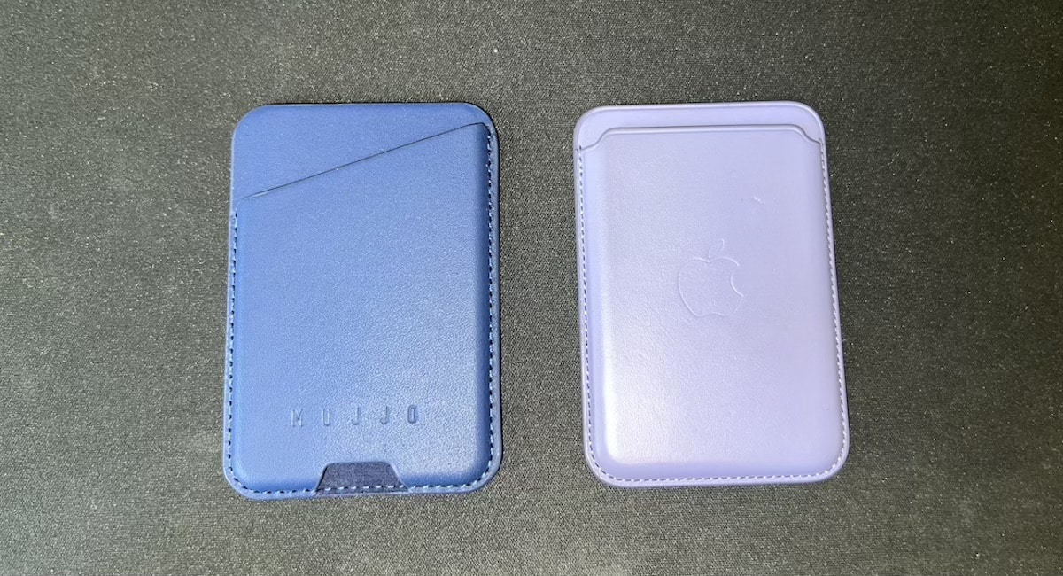 Mujjo Leather Magsafeウォレットは、Appleの革の財布よりもわずかに厚くて背が高くなっています。両方の財布のサイズは非常に似ていると言っています。