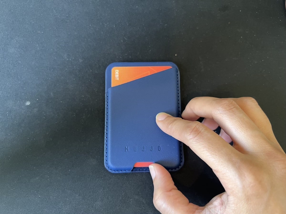 Mujjo Leather Magsafeウォレットは、最大3枚のカードを保持できます。これらのカードは、上部から、背面からだけでなく、iPhoneから財布を取り外すことなく、下からもアクセスできます。