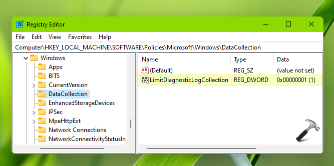 HKEY_LOCAL_MACHINESOFTWAREPoliciesMicrosoftWindowsDataCollection