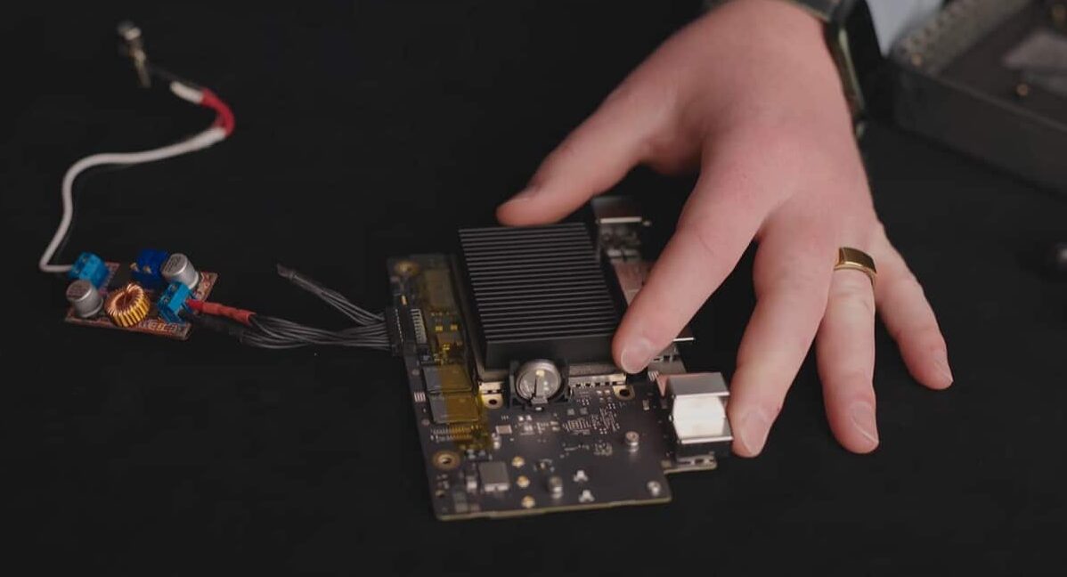 ネルソンは、デバイスの150W電源を外部の65Wマイクロソフト表面電源に置き換え、MagSafe 2コネクタを追加しました。 DC電圧レギュレータに接続し、電流をMAC Miniのロジックボードに導きます。