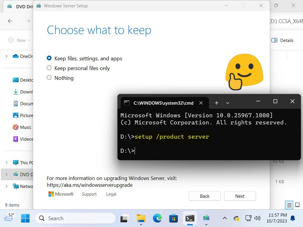 Windows 11のセットアップでは、「このPCはWindows Serverを実行できません」というエラーが発生し、結果としてインストールを停止しました。