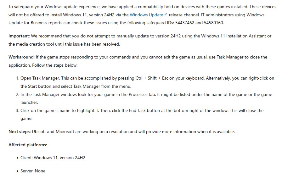 Microsoftは、UbisoftゲームがインストールされているPCでWindows 11 24H2アップデートをブロックしています。