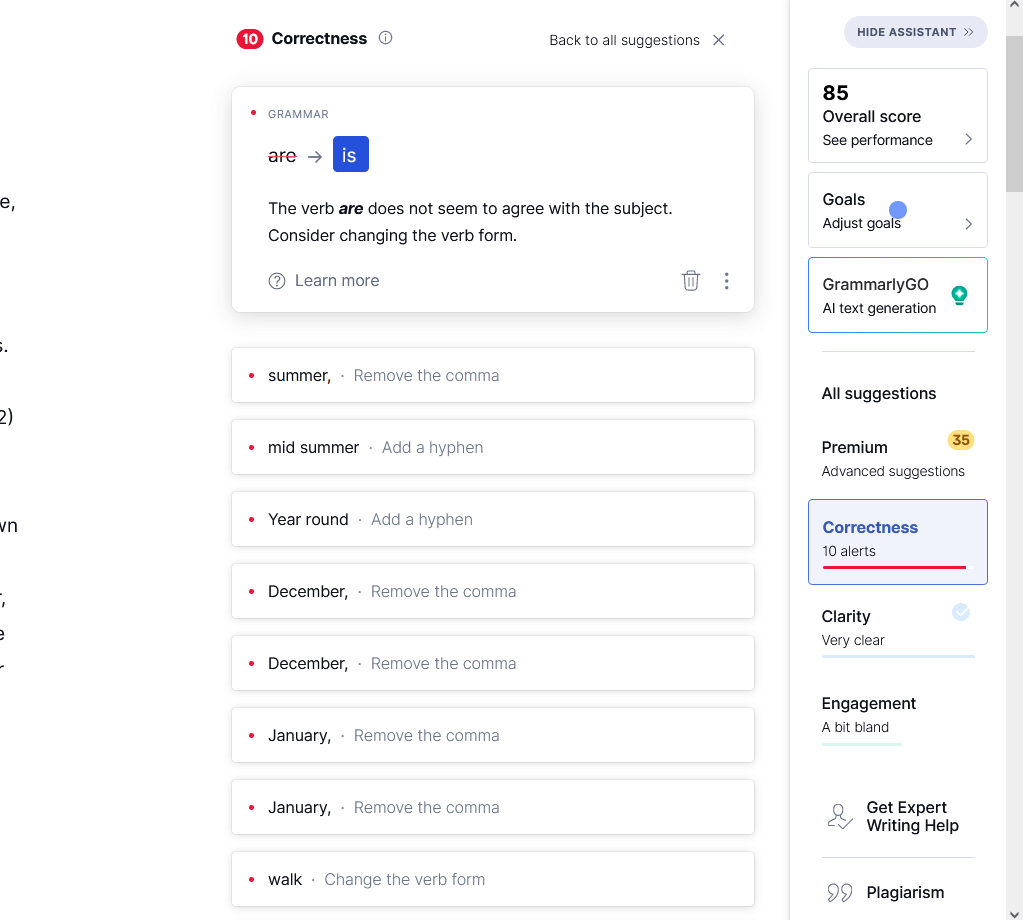 2つの文法チェックアプリを比較する際に重要な主なことは、エラーがどれだけうまくエラーを見つけ、ユーザーに提供する追加機能です。以下では、Grammarlyから始めて、各アプリが提供する機能について説明します。