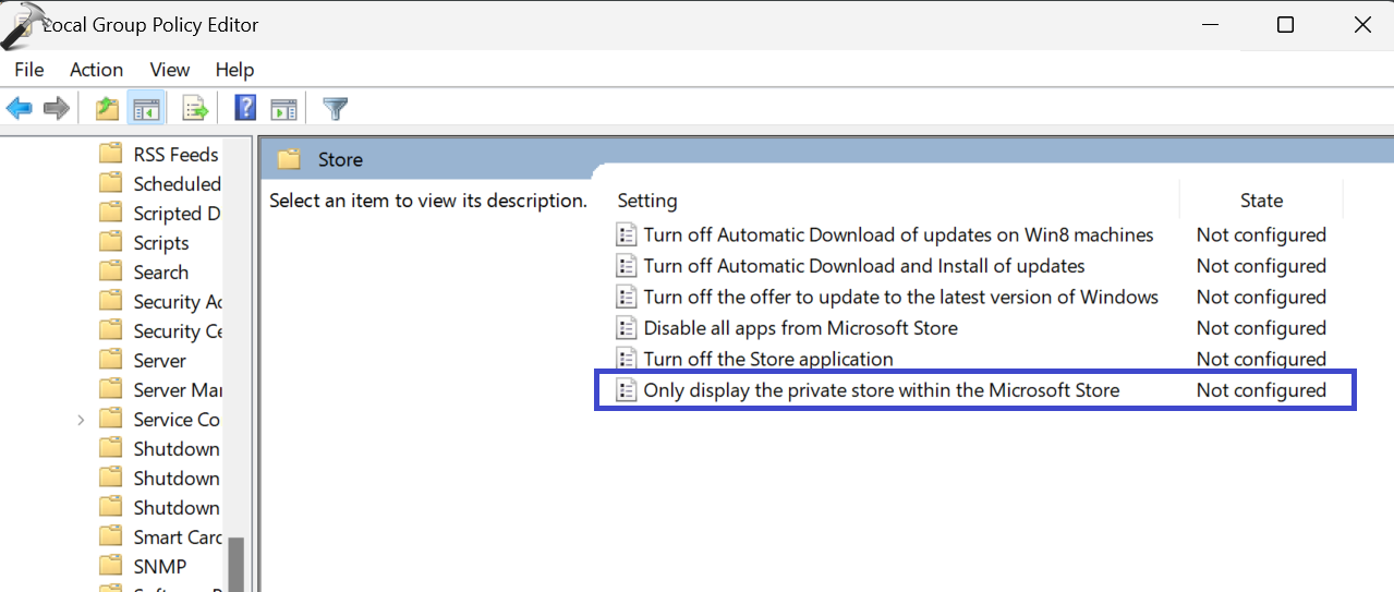 4。「」をダブルクリックしますMicrosoft Store内のプライベートストアのみを表示します