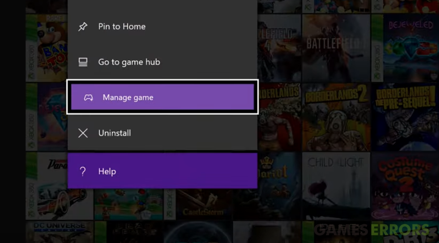 - 強調表示しますゲームとアドオンを管理します選択しますaコントローラーで。