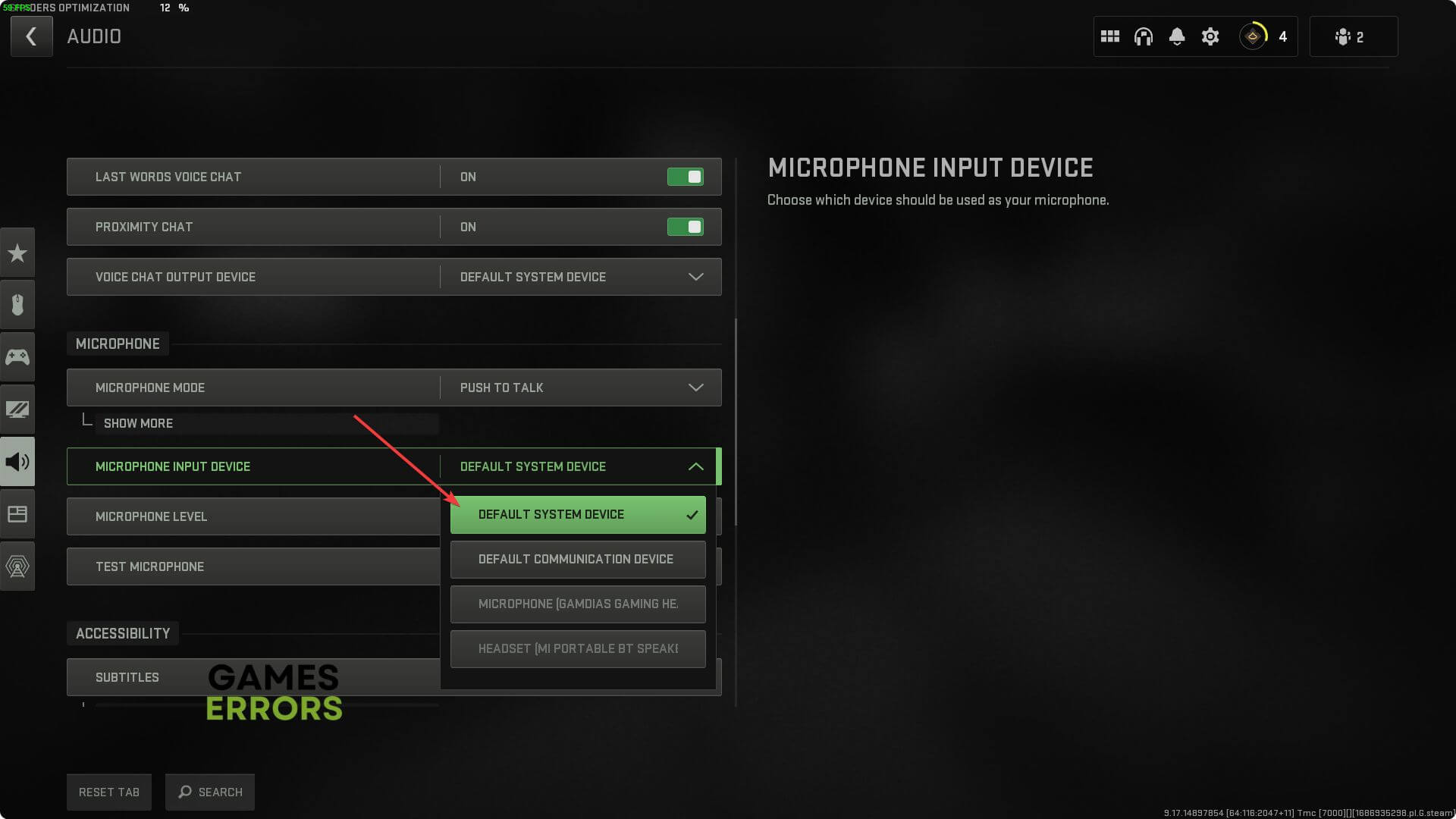 ゲームのオーディオ設定でデフォルトのマイクを選択すると、MW2で動作しないマイクが解決する場合があります。