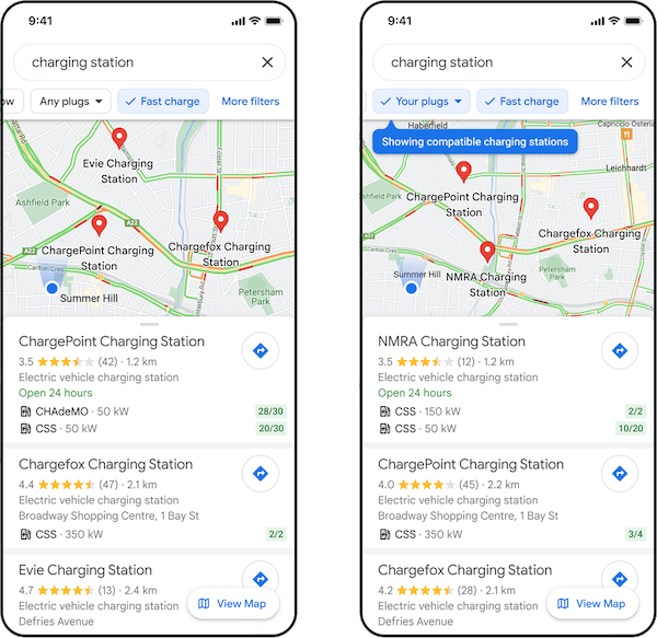 - 新しい「高速充電」フィルターを備えた最高の充電ステーションを見つけます。電気自動車の所有者は、近くの充電ステーションを検索するだけでなく、最速の充電ステーションを検索することもできます。ユーザーは、より多くの国でEVのプラグタイプに従ってステーションをフィルタリングすることもできます。