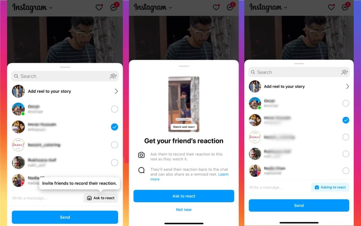 Instagramは、友人や家族が反応を記録するためにDMに「Ask To React」機能を追加します