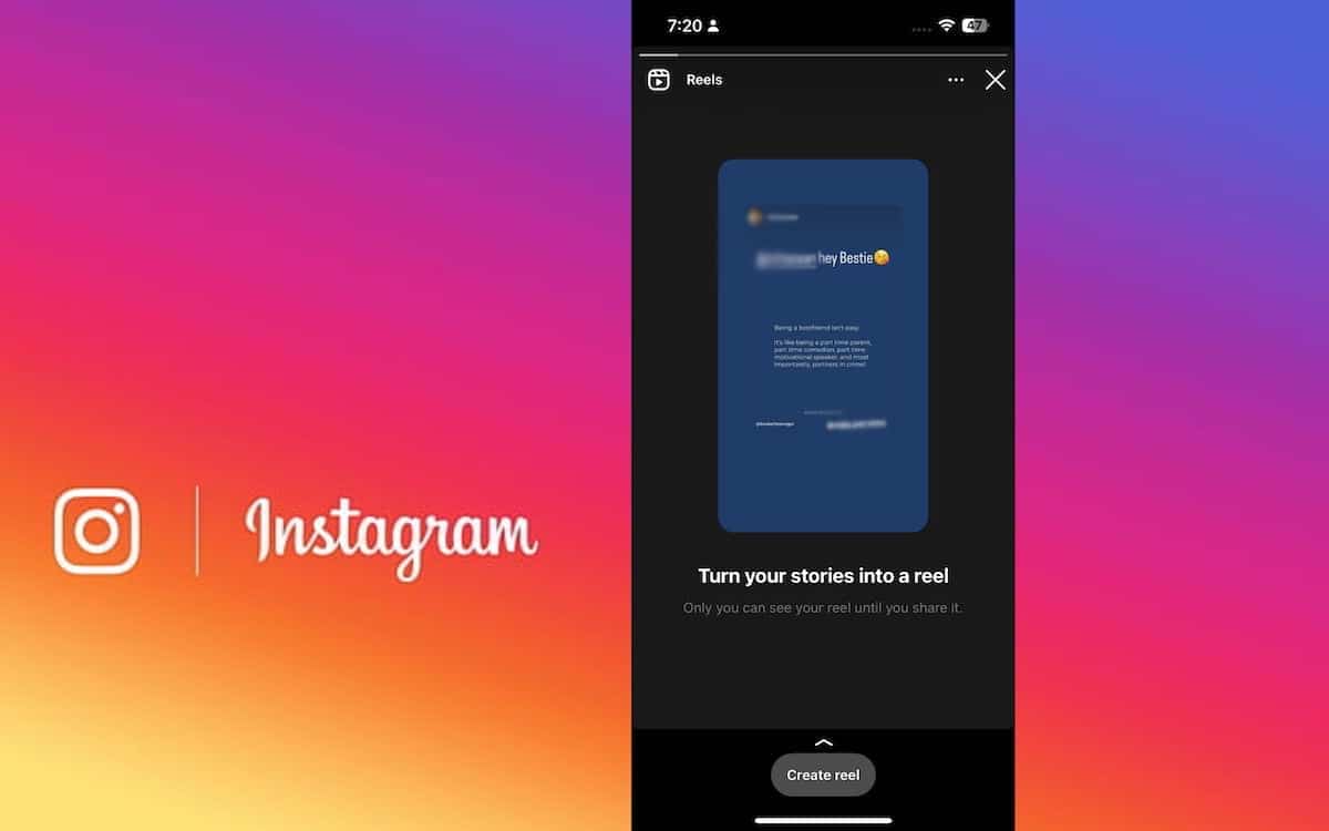 - ストーリーをタップしている間、別の新しいプロンプトが表示されますストーリーをリールに変えます。この機能により、ユーザーはストーリーをリールまたはビデオに変換して、アーカイブまたは削除を選択するまでプロファイルにアクセスできるようになります。現在、ストーリーは24時間後に消えています。
