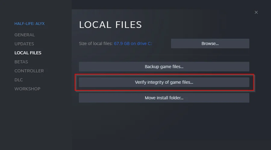 - ローカルファイルに移動してクリックしますの完全性を確認しますゲームファイル。