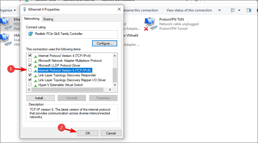 - 見つけますインターネットプロトコルバージョン6(TCP/IPv6)そしてそれをチェックしてください。 [OK]をクリックします。