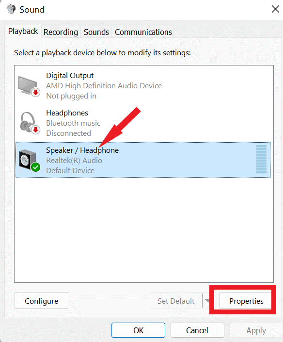 オーディオ出力ソースの競合は、Windows 11で次に頻繁にサウンドの問題の原因です。スピーカーやヘッドフォンなど、多数のオーディオデバイスが接続されている場合、1つのサウンドソースが常に再生されます。したがって、Windows 11が適切な出力デバイスにサウンドをルーティングする前に、適切なオーディオソースを選択します。これを行うには、以下の手順に従ってください。
