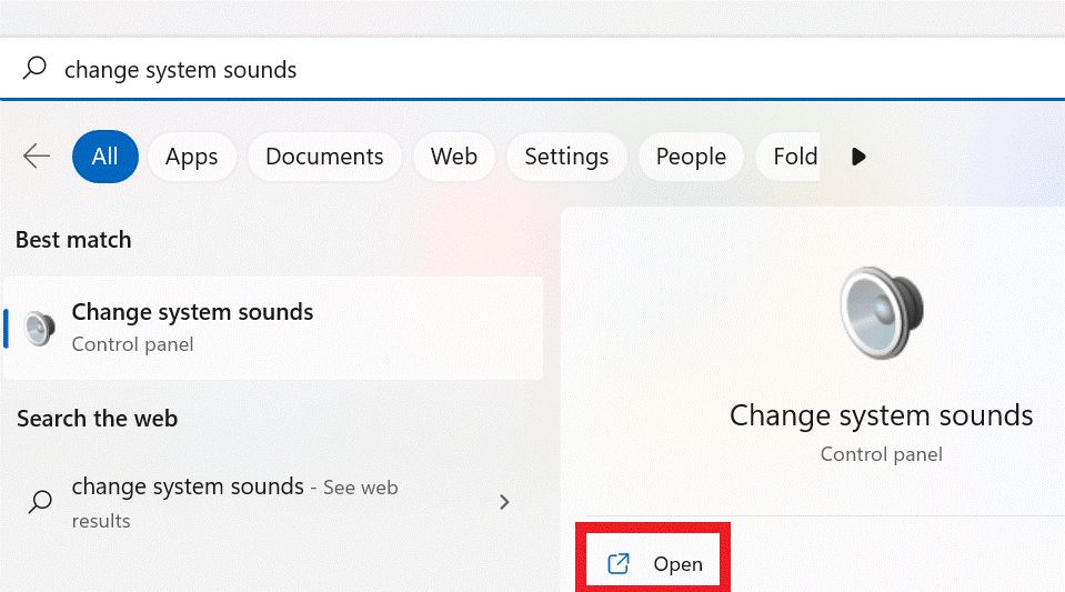 ステップ1 =をタップします検索バーからタスクバータイプシステムサウンドを変更しますそしてそれを開きます。