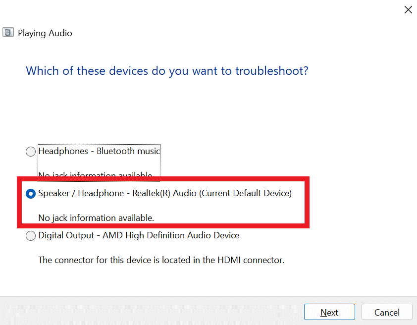 ステップ3 =現在PCに接続されているオーディオ再生デバイスを選択します。