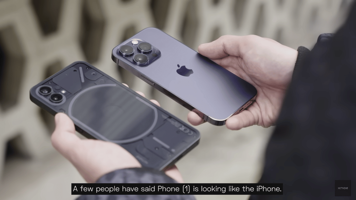 電話1は、メインデュアルカメラシステムのオールスクリーンディスプレイ、サイドボタン、垂直方向を備えたiPhoneのフラットスラブデザインに似ています。ミッドレンジのスマートフォンとして、iPhone SE(2022)のように470ドルから始まります。