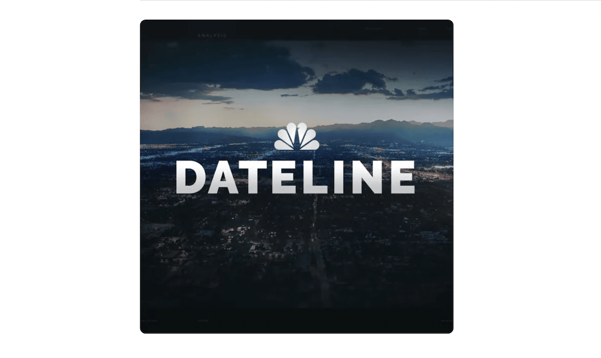 Appleの広報担当者によると、DatelineはAppleポッドキャストで最も人気のあるチャネルの1つです。金曜日の午後の時点で、Datelineはノーでした。 Appleのポッドキャストチャートで8、いいえ。 3真の犯罪カテゴリーで。来月31シーズンを開始するDatelineは、NBCで最も長く続いているPrimetimeシリーズです。