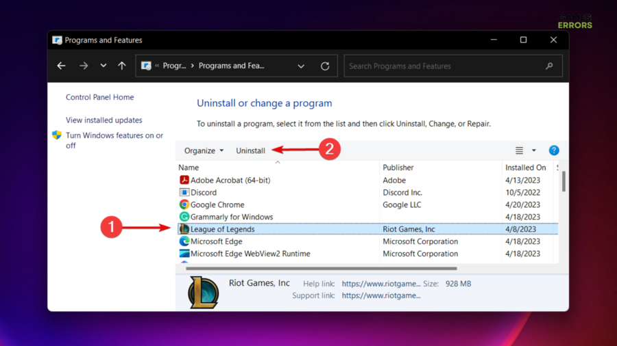 2. の下プログラムセクション、プログラムのアンインストールを選択します。
