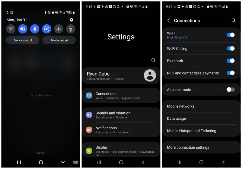 それが有効になっているが、フィリップスの色合いのライトがまだ到達できない場合は、もう少し深く掘り下げる必要があります。 Androidで、[デバイス設定]メニューを開き、選択します接続、そして下のネットワーク名を見てくださいWi-Fiセレクターの近く。 iPhoneで、選択してください設定>Wi-Fiホーム画面から。接続しているネットワークの名前の横に青いティックが表示されます。