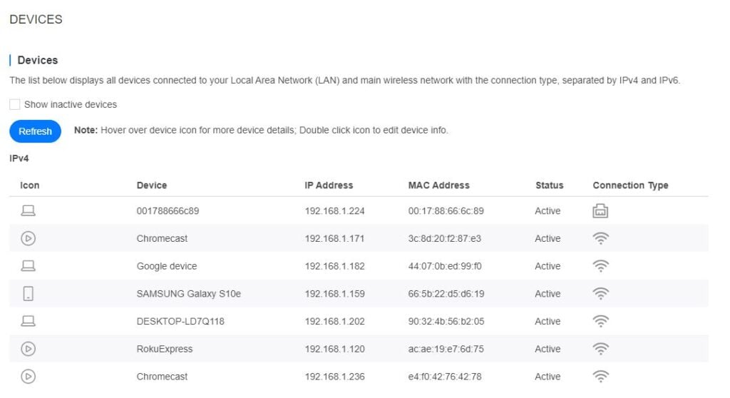 管理者としてルーターにログインし、ネットワーク接続メニューの下で(これはルーターごとに異なります)、デバイスオプション。