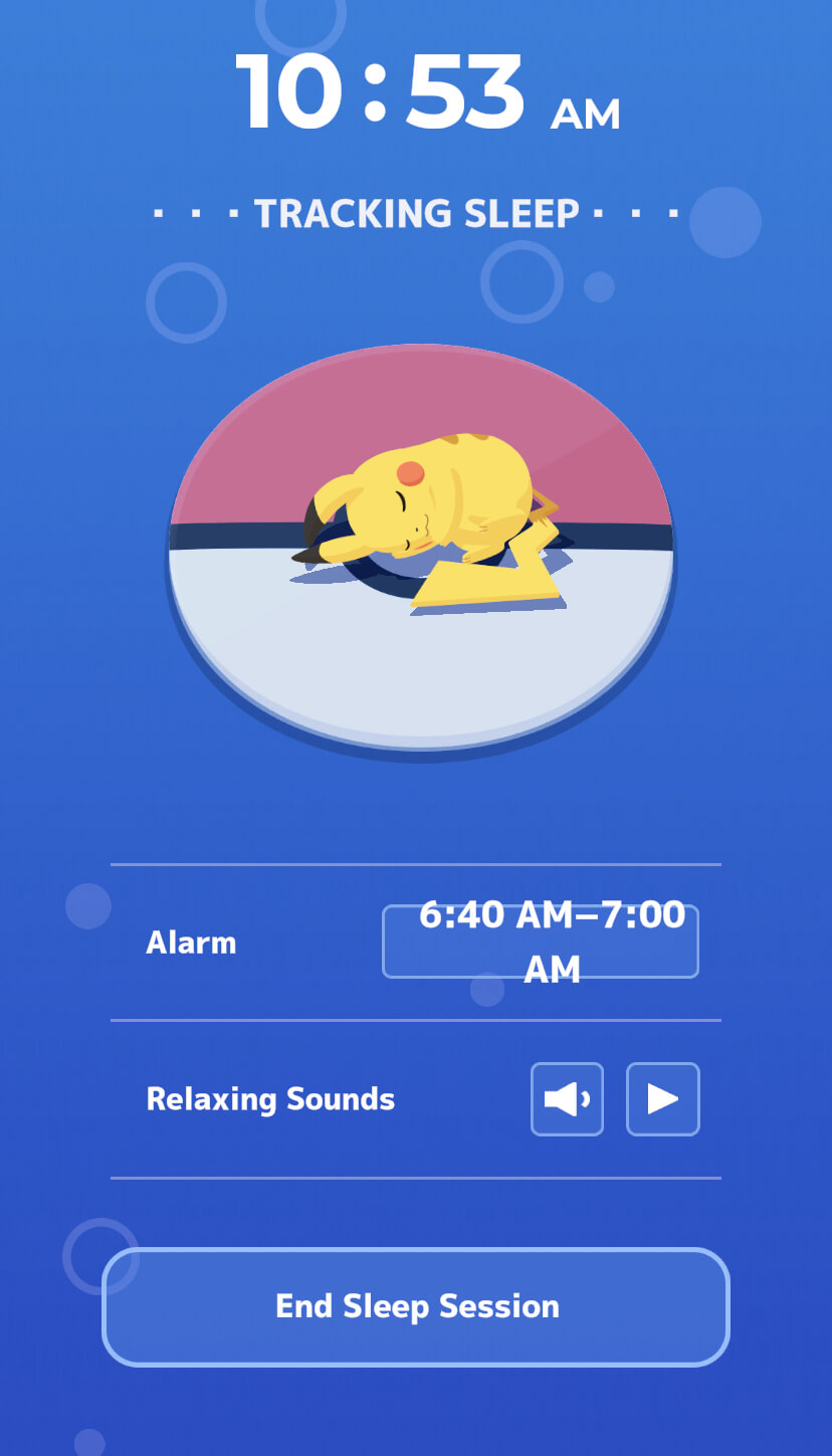 あなたが眠る間、ポケモンの睡眠はあなたの音と動きを使用して、あなたがどの睡眠段階にあるか、そしてあなたが眠った時間を決定します。目を覚まして睡眠セッションを終了すると、この追跡されたデータがすべて表示されます。