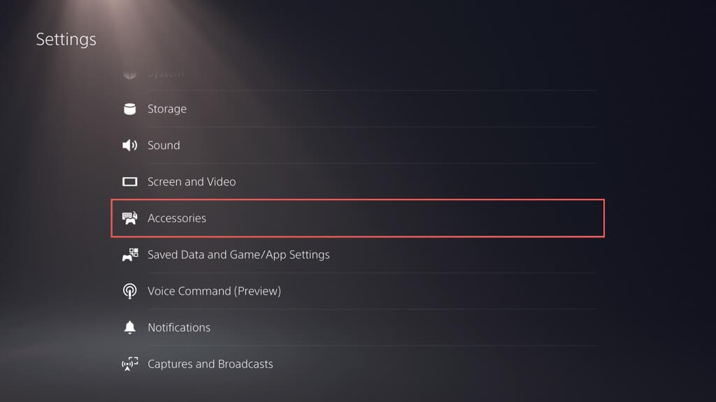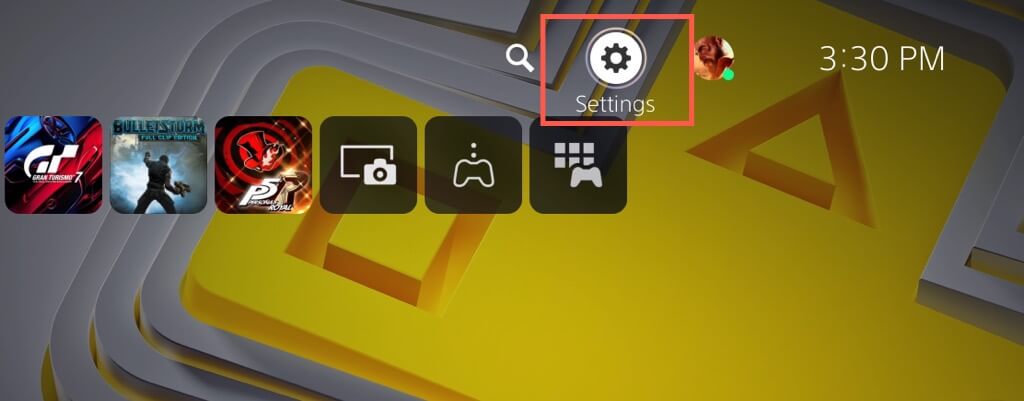 - を押します詩プライマリコントローラーのボタンと選択設定PS5ホーム画面の右上に。