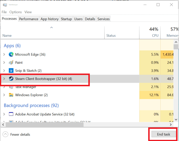 - 近いタスクマネージャーそして再起動スチーム。改善を確認してください。