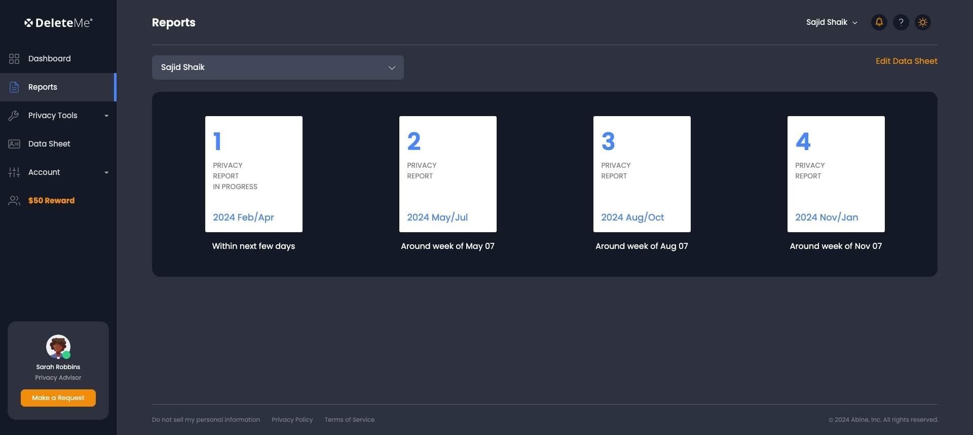Deletemeは、オンラインプライバシーを理解して改善するのに役立つパーソナライズされたプライバシーレポート、ツール、さらには個人的なプライバシーアドバイザーを提供します。