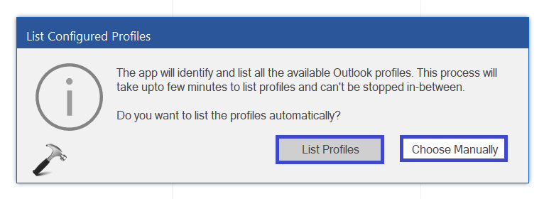 「リストプロファイル」オプションは自動的にコンピューターをスキャンし、利用可能なすべてのOutlookプロファイルをリストします。