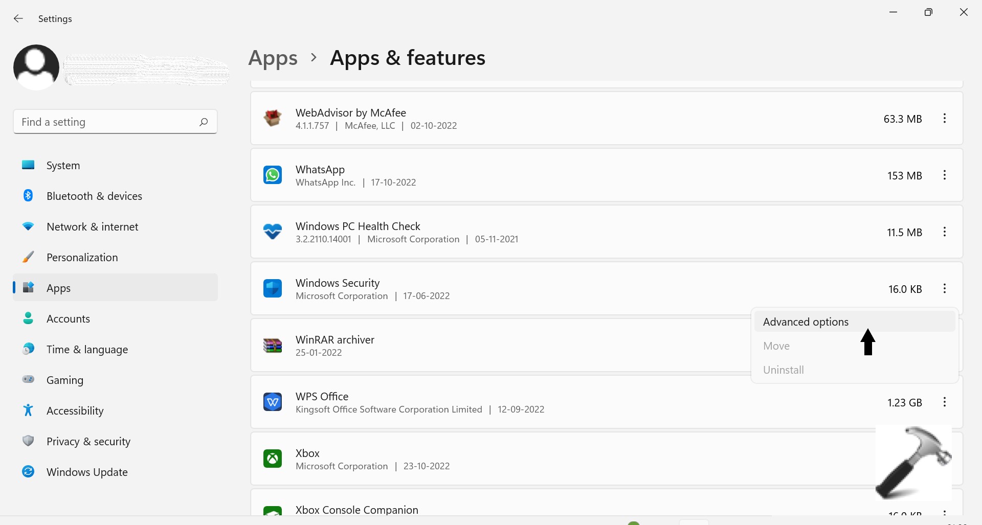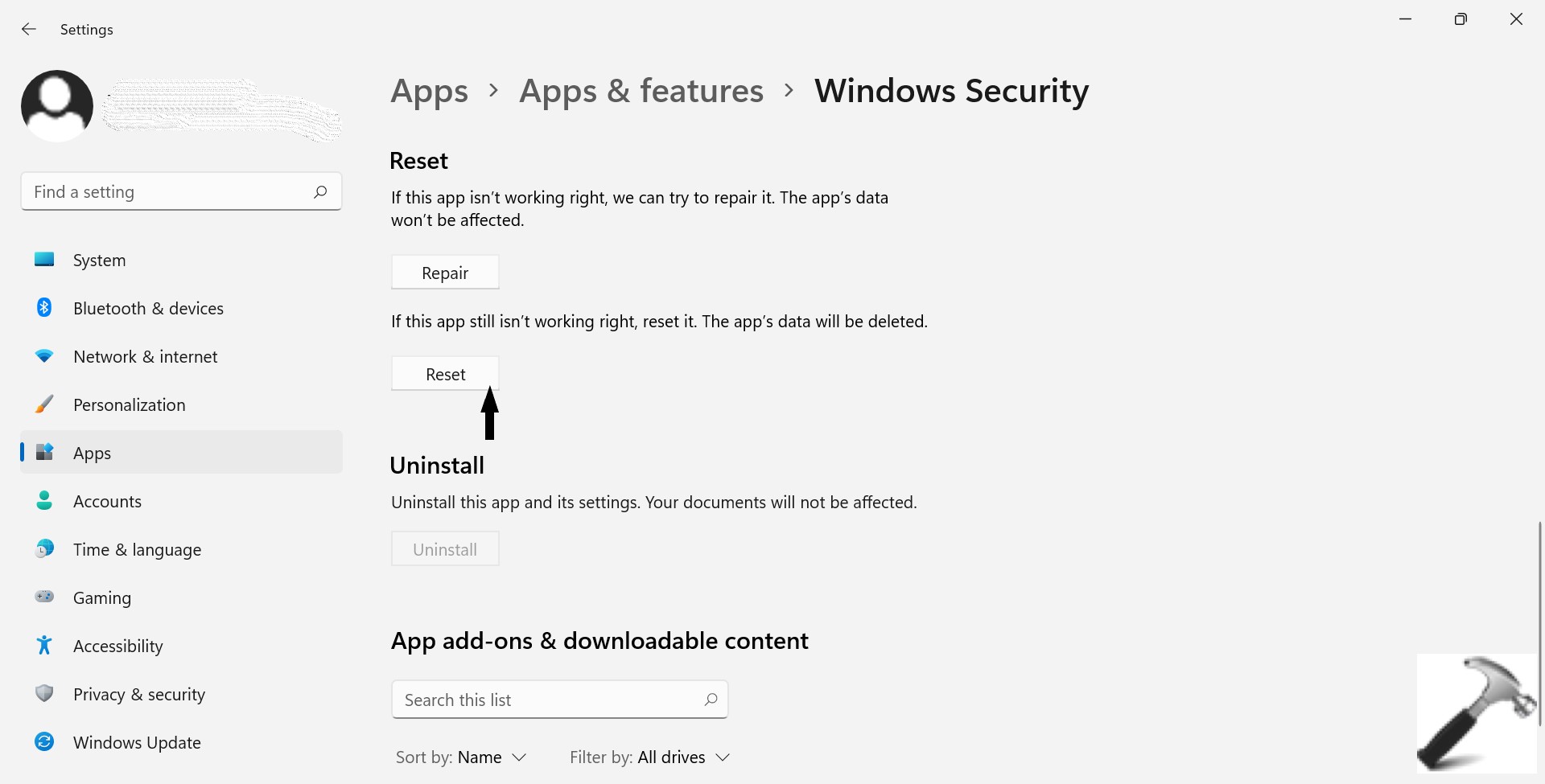 方法2:Windows11のWindowsセキュリティをリセットするために設定を使用する