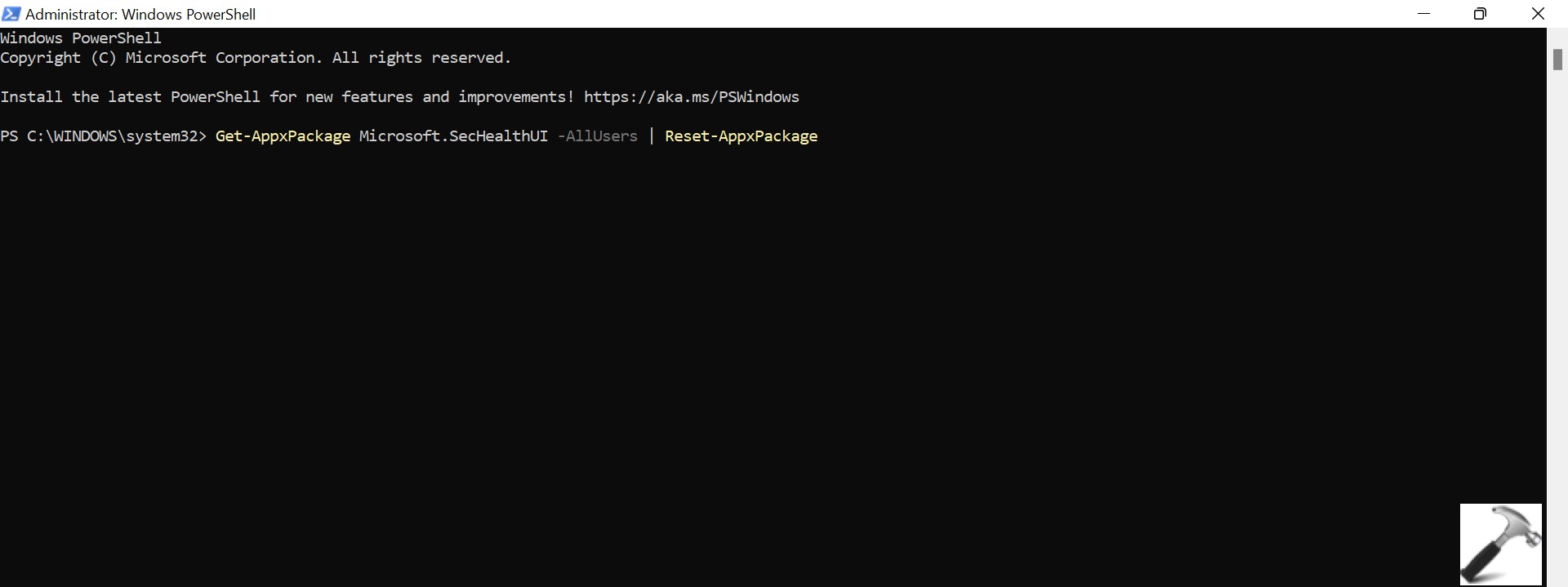 Get-AppxPackage Microsoft.SecHealthUI -AllUsers | Reset-AppxPackage